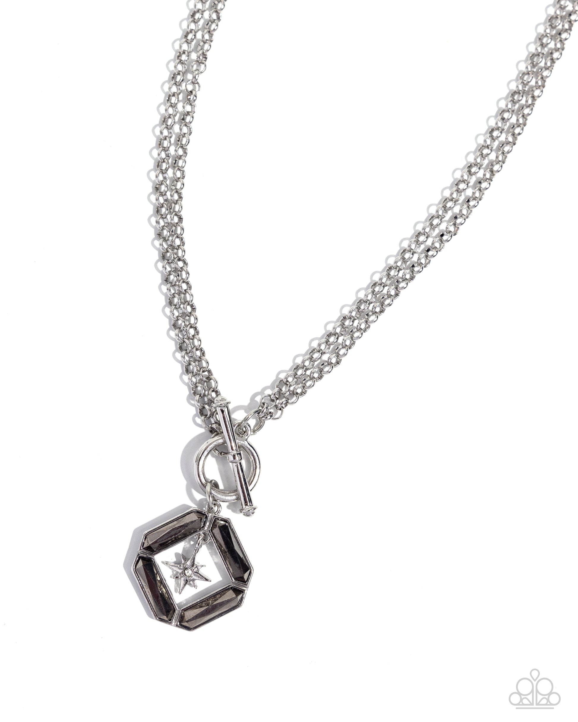 Compass Cadenza - Silver Star/Smoky Gems Pendant Paparazzi Necklace & matching earrings