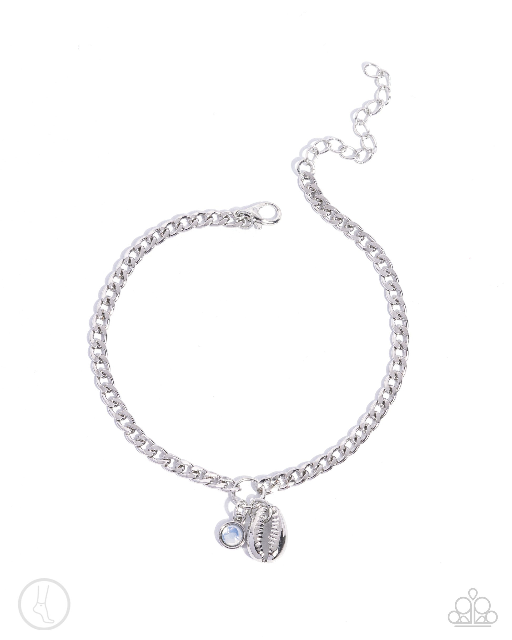 Conch Comeback - White Opalescent Bead & Silver Conch Shell Paparazzi Anklet