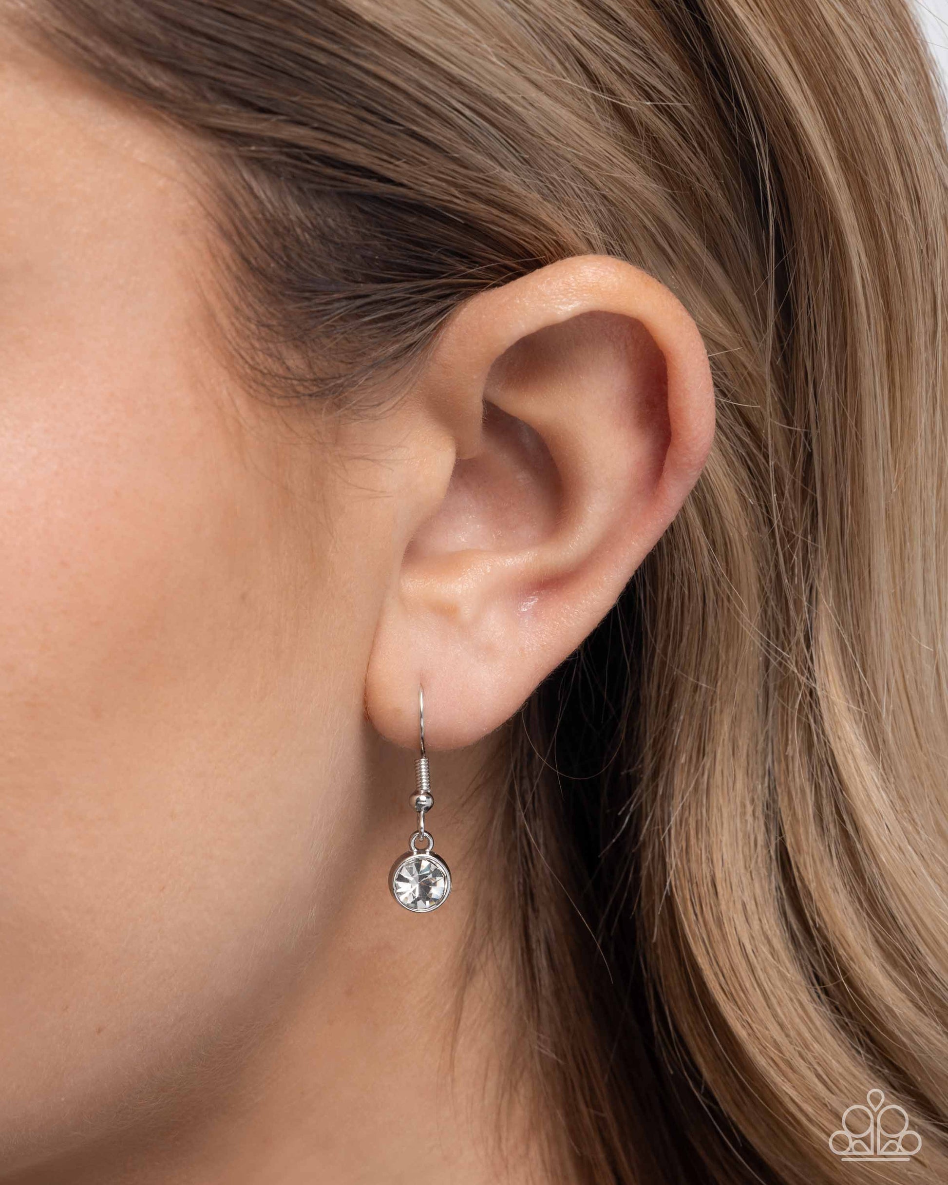 Cuddly Chic - White Rhinestone Embellished Silver Teddy Bear Pendant Paparazzi Necklace & matching earrings