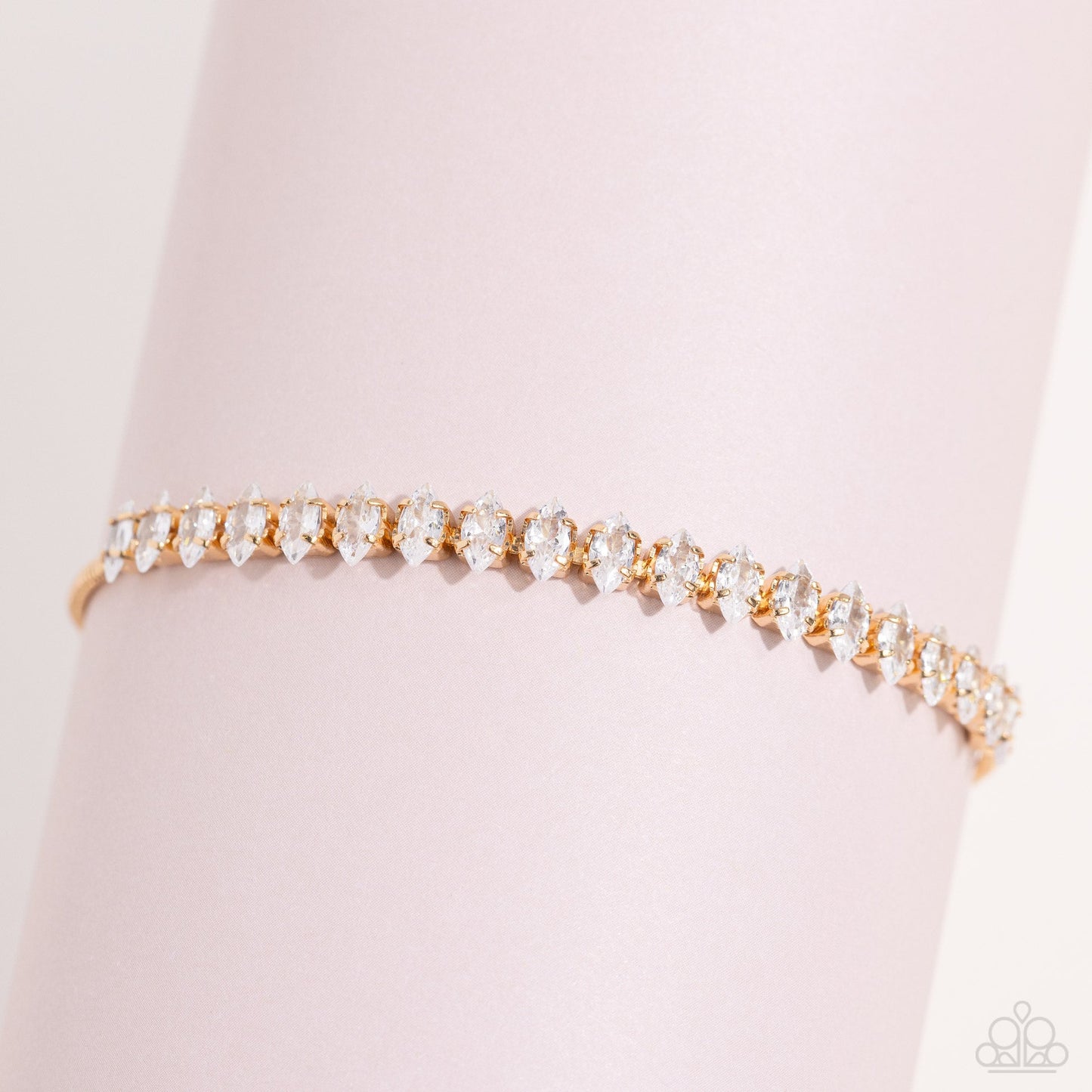 Dynamic Diamonds - Gold Snake Chain & Dainty Diamond Shape Rhinestone Paparazzi Urban Bracelet