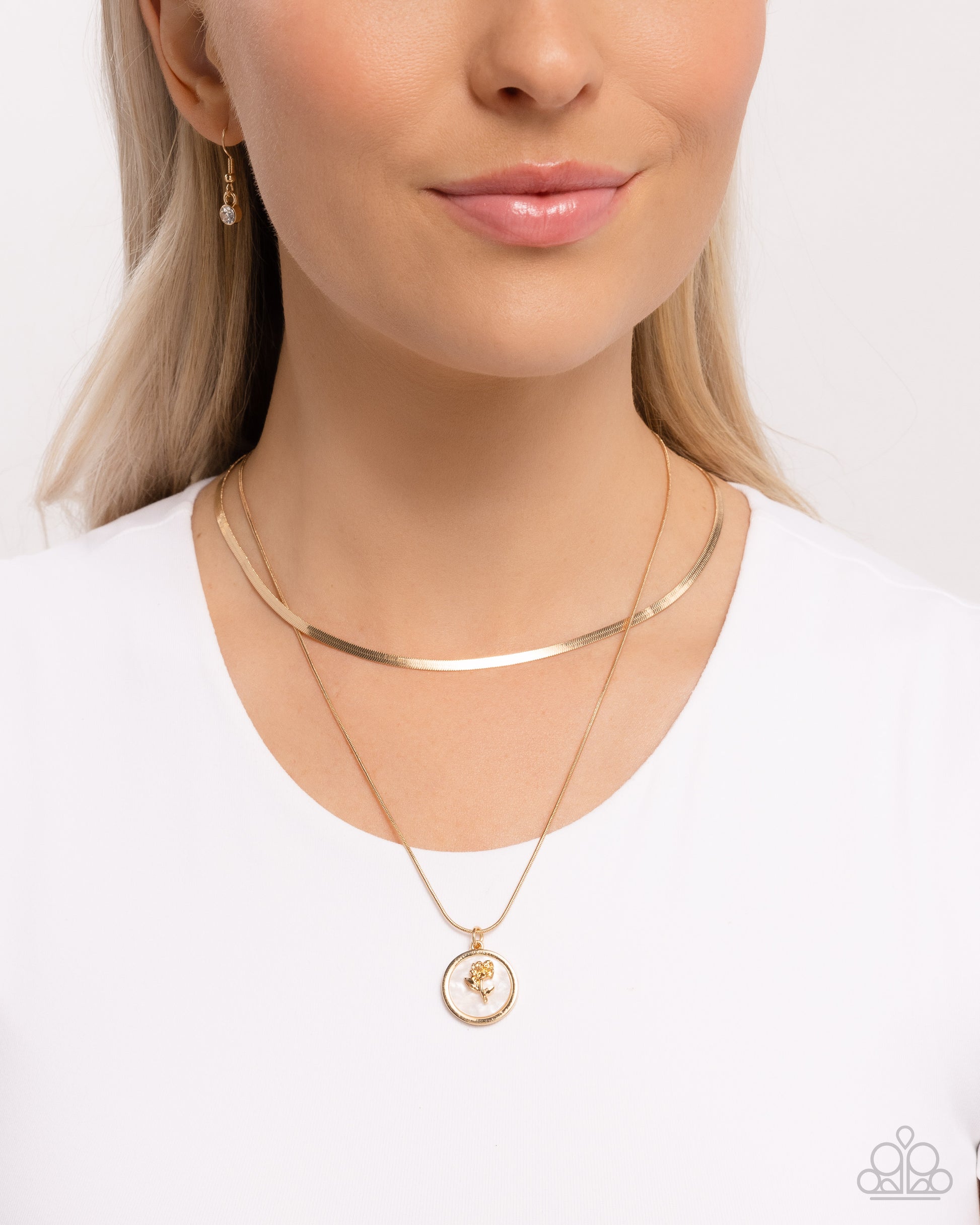 Garden Gallery - Gold Chain/Rose Pendant Paparazzi Necklace & matching earrings