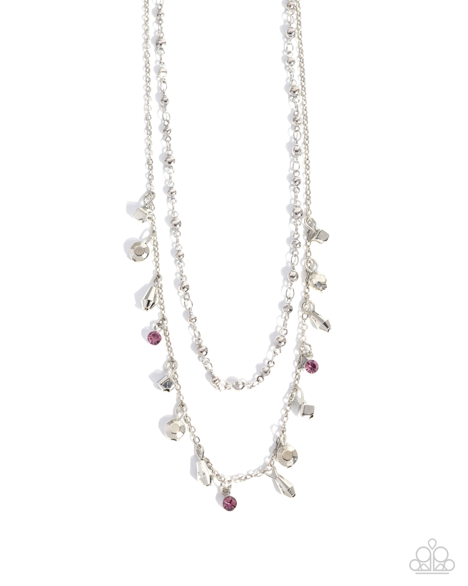 Layered Limit - Purple Rhinestones/Silver Cubes Paparazzi Necklace & matching earrings