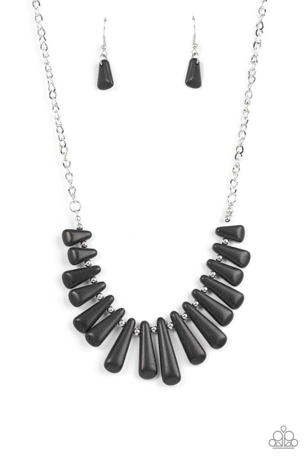 Mojave Empress - Black Triangular Stones/Dainty Silver Beaded Paparazzi Necklace & matching earrings