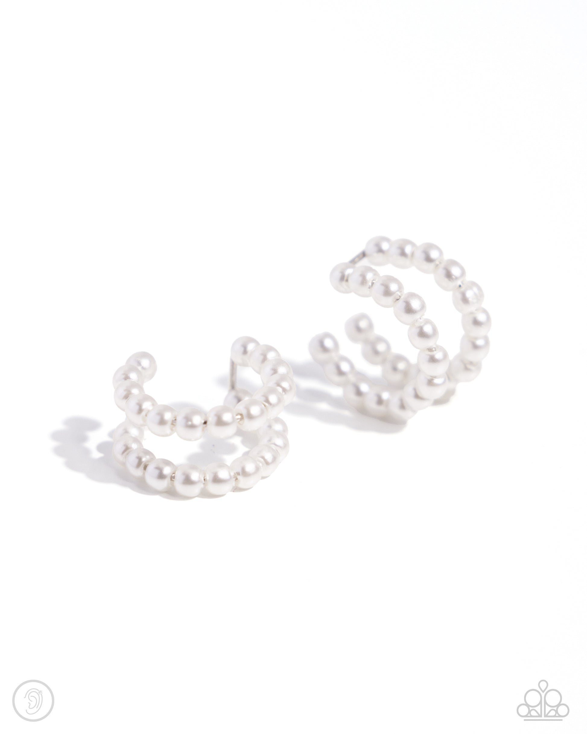 PEARLS Just Want to Have Fun - White Pearl Encrusted Paparazzi Ear Cuff Earrings