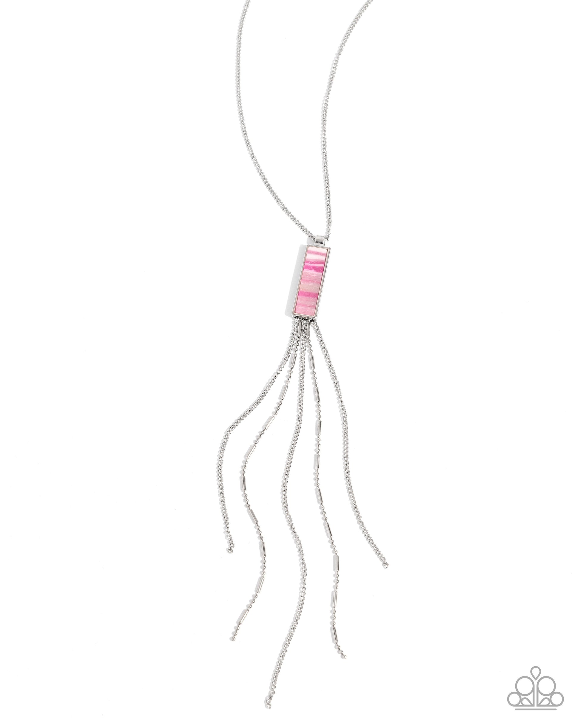 Refreshing Redemption - Pink Rectangular Stone/Silver Chain Tassels Paparazzi Necklace & matching earrings