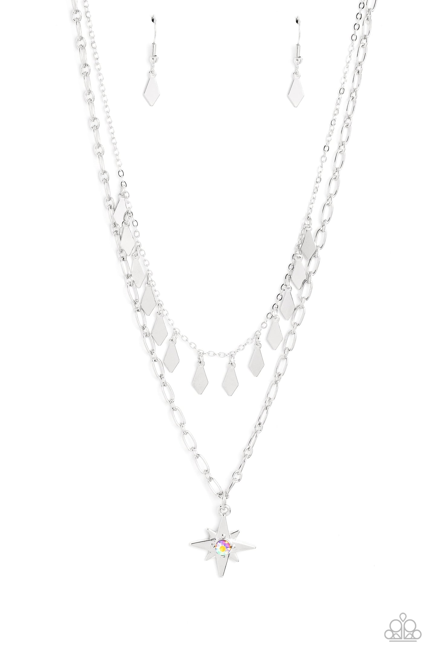 The Second Star To The LIGHT - Orange Iridescent Rhinestone/Silver Star Pendant Paparazzi Necklace & matching earrings