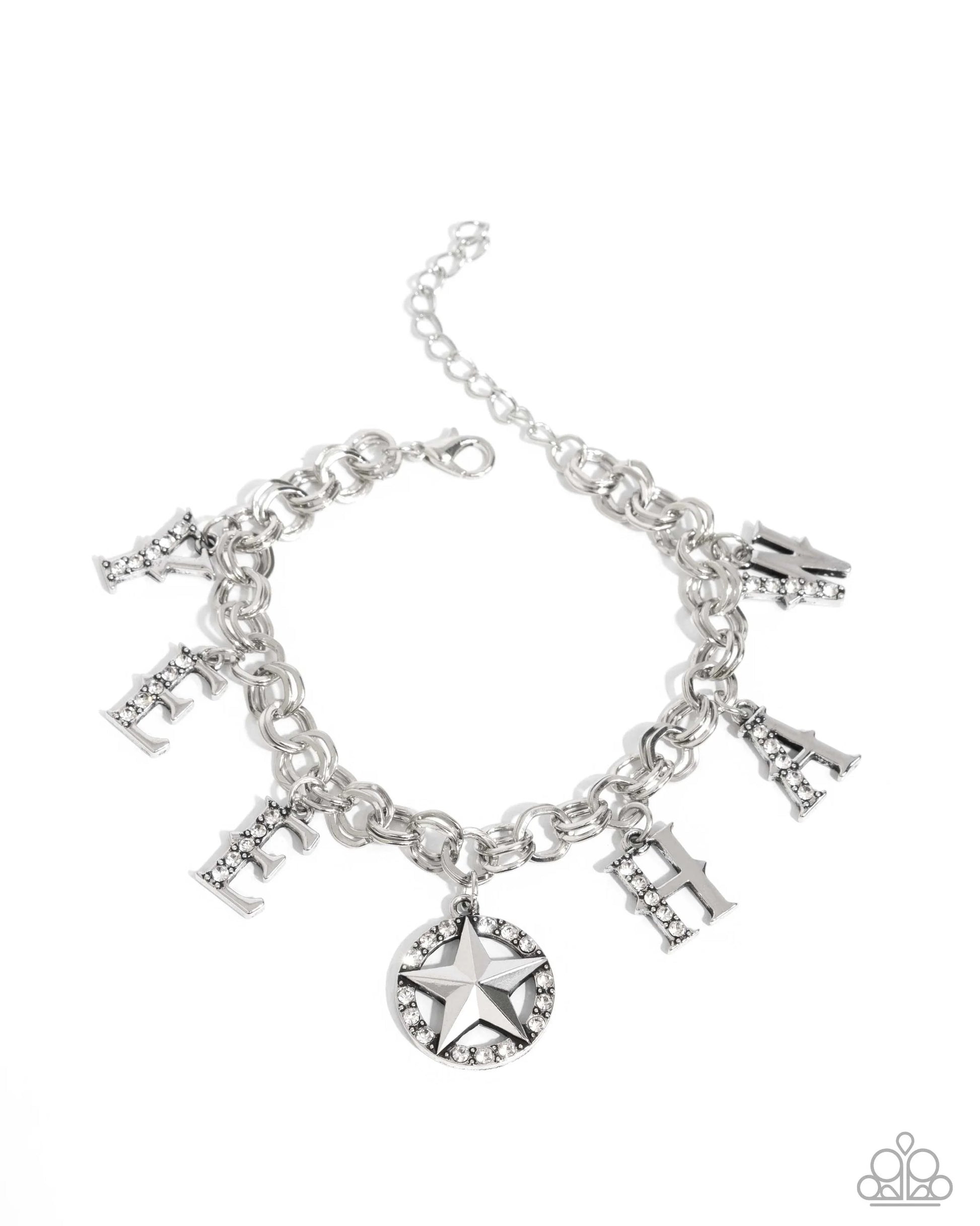 Yeehaw Yell - White Rhinestone Embellished Silver "Yee Haw' Paparazzi Tennis Bracelet